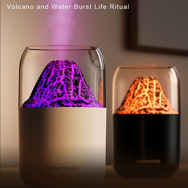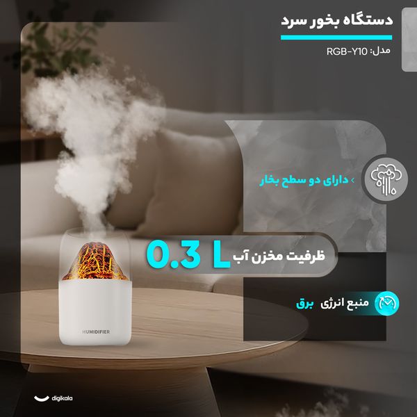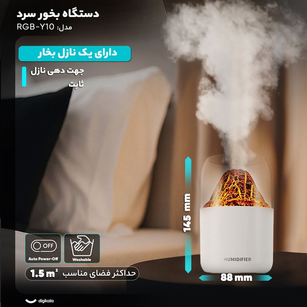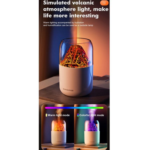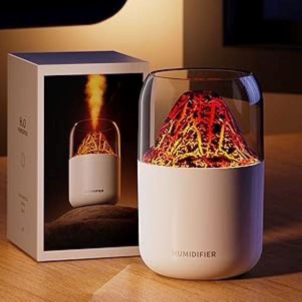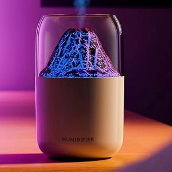 دستگاه بخور سرد آتشفشان – رطوبتساز بیصدا با چراغ 7 رنگ و طراحی قابلحمل